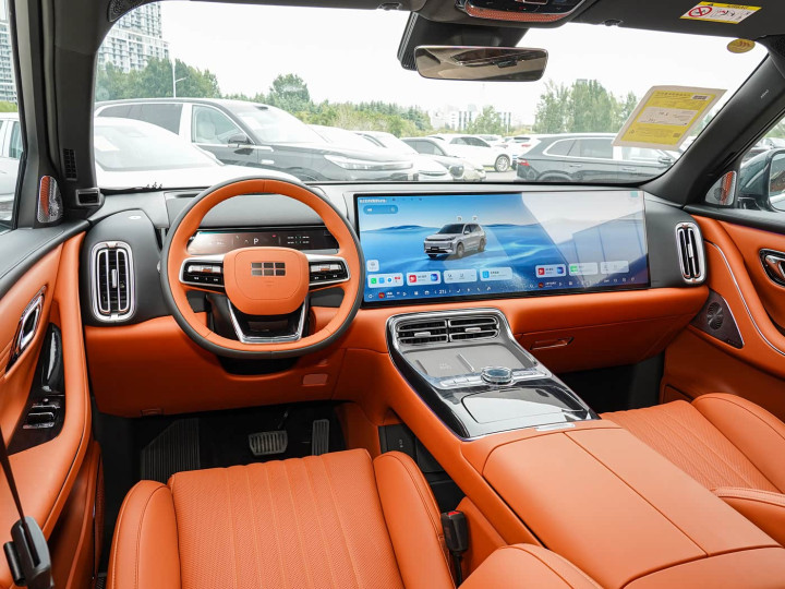 进入车内,新车内饰整体为装拼色设计来增加年轻定位,并且堆成的中控台配备了30英寸6K一体屏+32英寸AR-HUD构成数字座舱,并且17.3英寸吸顶屏与9.1L冷暖冰箱满足家庭娱乐需求,科技感提升明显。座椅方面,新车主驾16点按摩撑腰椅+副驾无缝腿托,二排行政座椅支持10点按摩,三排150°躺倒设计实现全员奢享,舒适感比肩MPV车型,而5.2㎡座舱面积支持96种组合变换,2171L后备箱容积可容纳6个28寸行李箱,日常出行没压力。